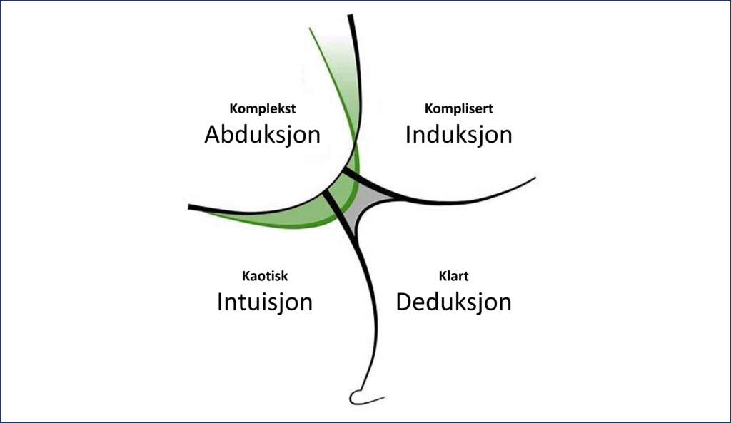 Resonnering er tenking der man trekker fornuftige konklusjoner. Man skiller gjerne mellom deduksjon, induksjon, og abduksjon. I tillegg har vi intuisjon, som ikke er resonnering i klassisk forstand, men i alle fall i en evolvert forstand. Mappet på Cynefin-lerretet ser det slik ut: