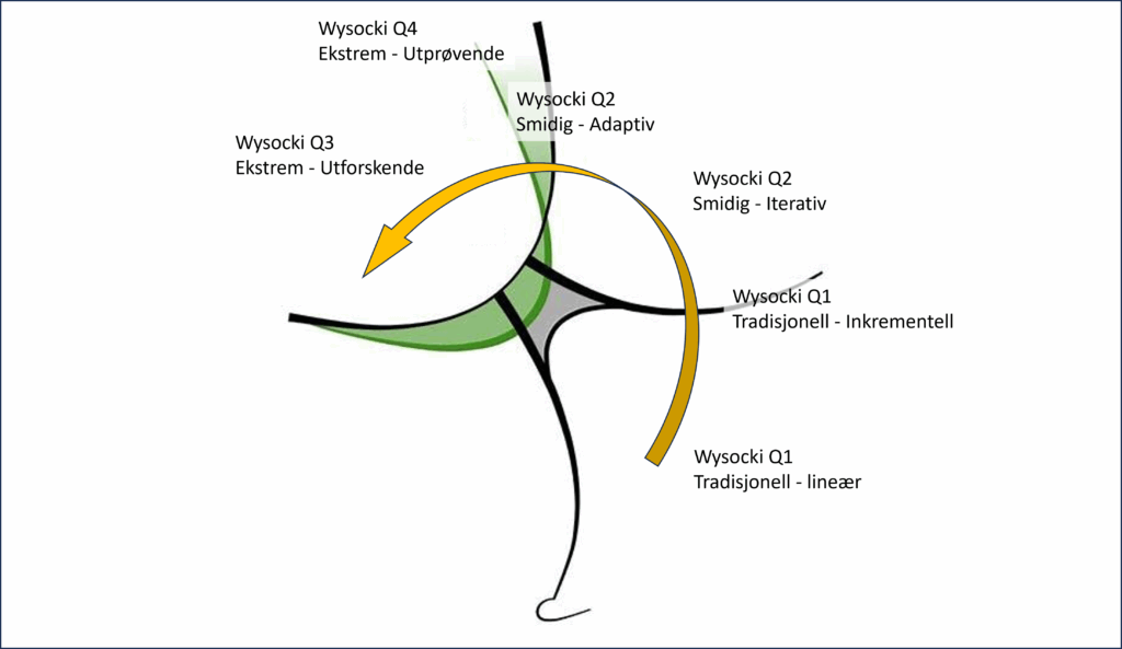 Da er det mer å hente fra Robert K. Wysockis prosjektmodeller og hans teorier og metodeverk for prosjektstyring, som jeg tidligere har skrevet om i Hva er galt med statens prosjektmodell på Digi.no. Wysocki er en internasjonalt anerkjent kapasitet på området. Også i vår hjemlige klassiker «Praktisk prosjektstyring» av professor emeritus Asbjørn Rolstadås er det flere henvisninger til Wysocki. I boka Effective Project Management deler Wysocki prosjektlandskapet opp i fire kvadranter: